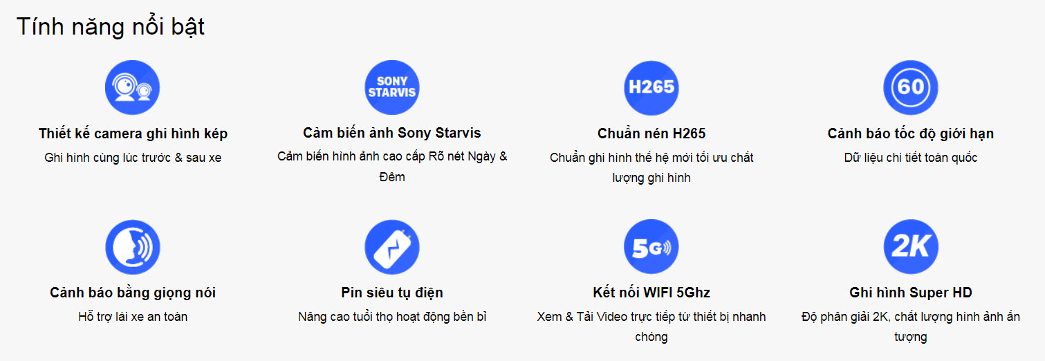 VIETMAP KC01 với camera trước độ phân giải SUPER HD 2K kết hợp cùng camera sau Full HD 1080p ghi lại chi tiết toàn bộ hành trình trước & sau xe cùng với tốc độ.