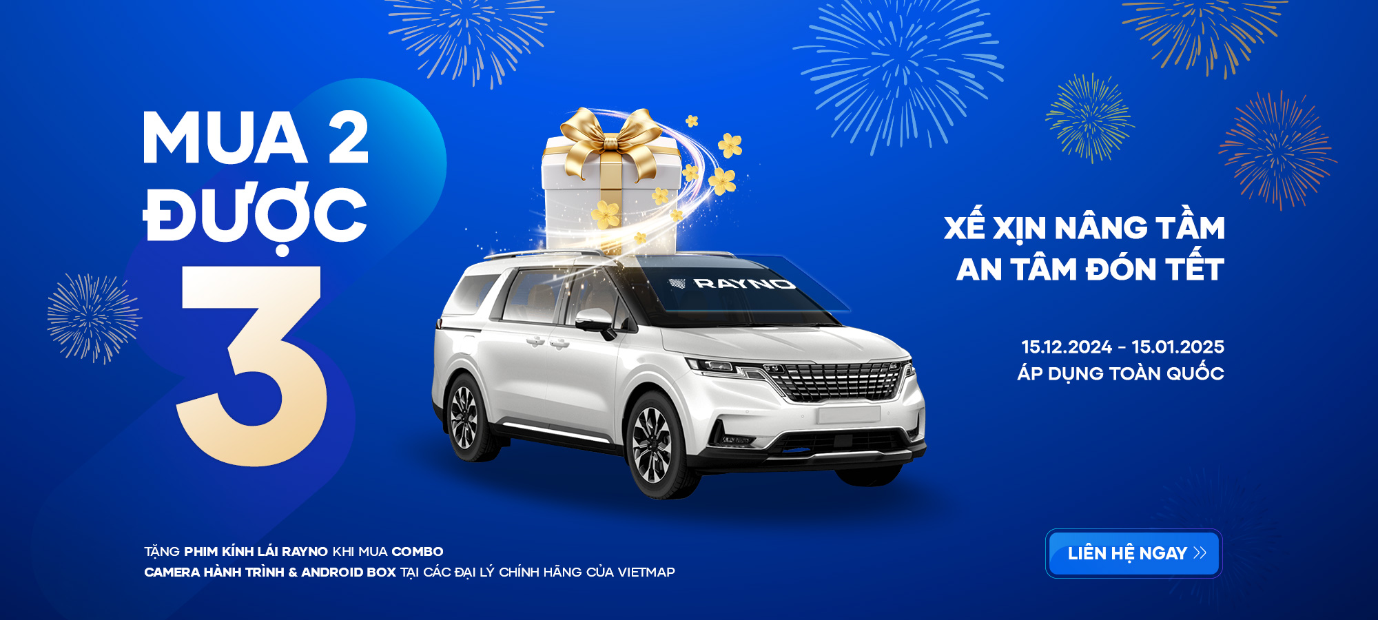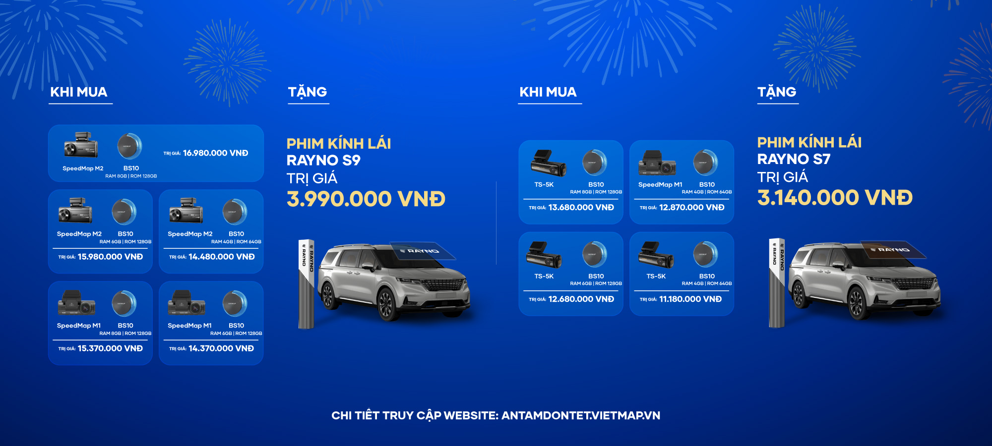 - Khách hàng được khuyến khích chụp ảnh xe sau khi hoàn tất lắp đặt và chia sẻ lên mạng xã hội kèm các hashtag: #antamdontet #VIETMAP #Rayno để cùng nhau lan tỏa niềm vui và cơ hội nhận ưu đãi hấp dẫn.