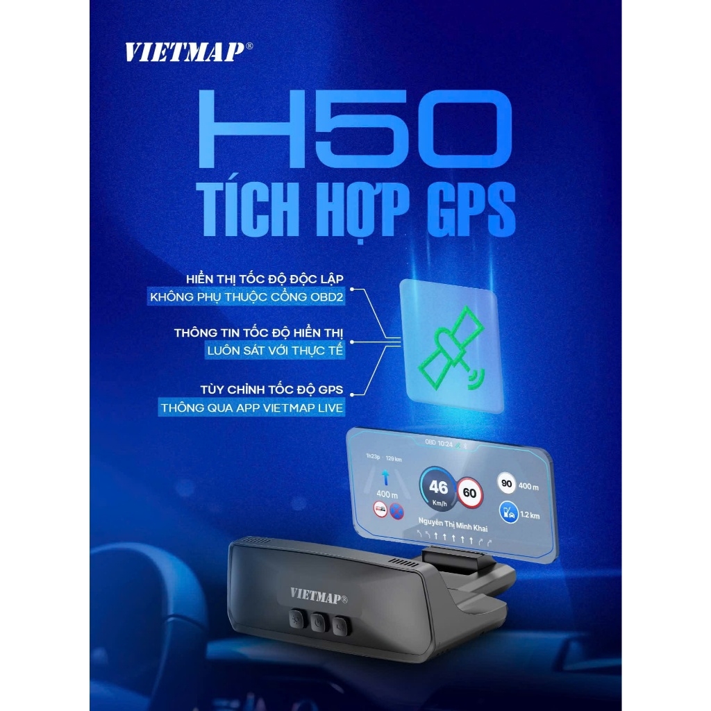 HUD Vietmap H50 – Hiển Thị Tốc Độ Ngay Tầm Mắt | GPS Độc Lập | Cảnh Báo Giao Thông | An Toàn Khi Lái Xe