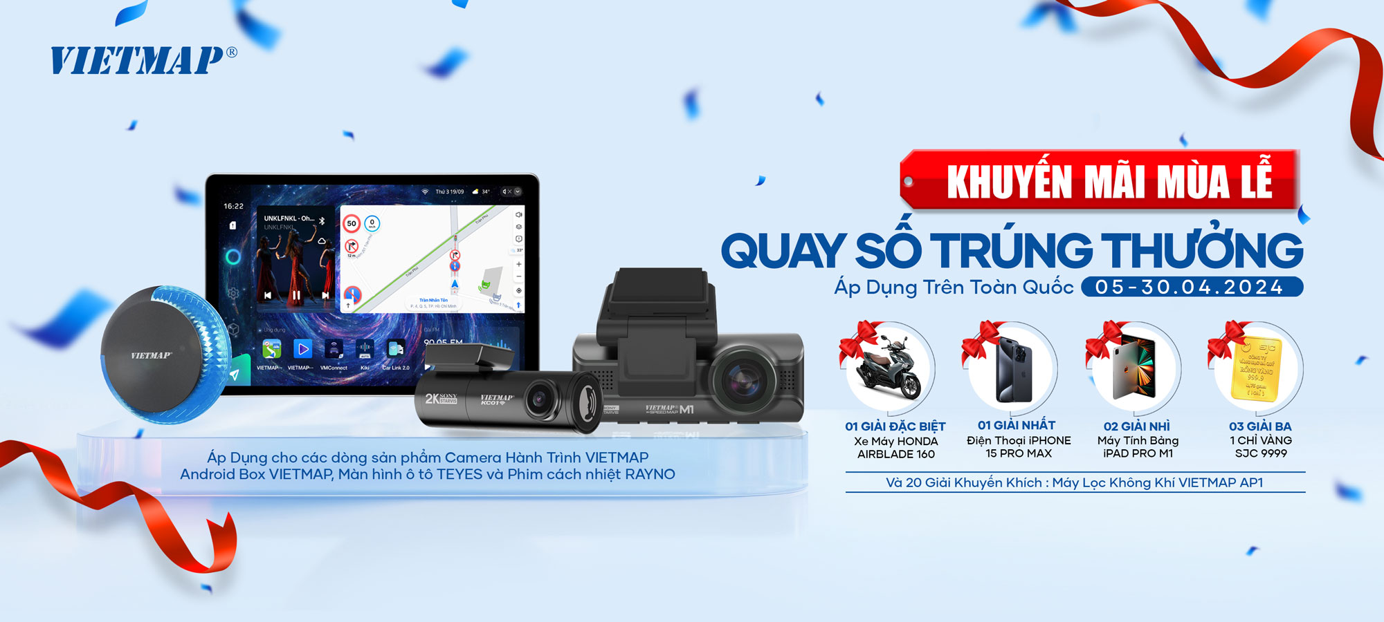 Nhận ngay giải thưởng giá trị khi mua sắm các sản phẩm VIETMAP trong mùa lễ tháng 4 này.